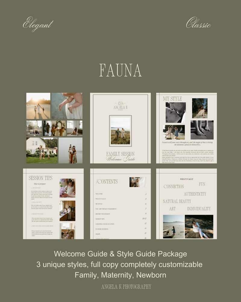 "I already had my own guides I’d made but I was leaving out so much information I never even thought of, that would benefit my clients in their preparation and overall experience. These guides are so beautifully designed with function and art in mind. They are fully customizable so you can change up anything you want to! If you have a more documentary and “let kids be kids” outlook of family photography, you probably won’t have to change anything but the images because the language Angela uses in these guides is so poetic and as someone who takes that similar approach, the wording of everything aligned so deeply for me. Even if you make a few changes for tone to match your personal vibe, you will still find that this is a perfect base for you to make minimal changes.